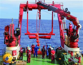 紅圈處為海麗雅集團為“蛟龍”研制的臍帶纜,通過有線數(shù)據(jù)傳輸破解觀測數(shù)據(jù)實時傳輸?shù)氖澜珉y題。